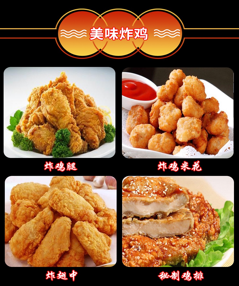 炸鸡翅、炸鸡腿、炸鸡排