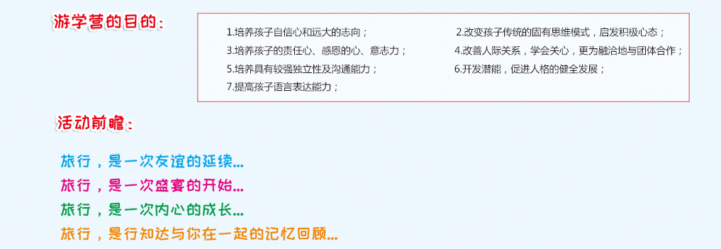 5.如果孩子有什么特殊情况,我们会时间通知您,请您时刻保持电话畅通,您也随时可以拨打带队老师的电话了解孩子的具体情况。