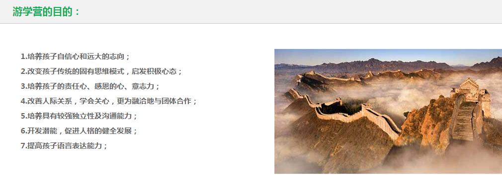 1.专业:针对“性格,信念,习惯”为训练目标的夏令营。